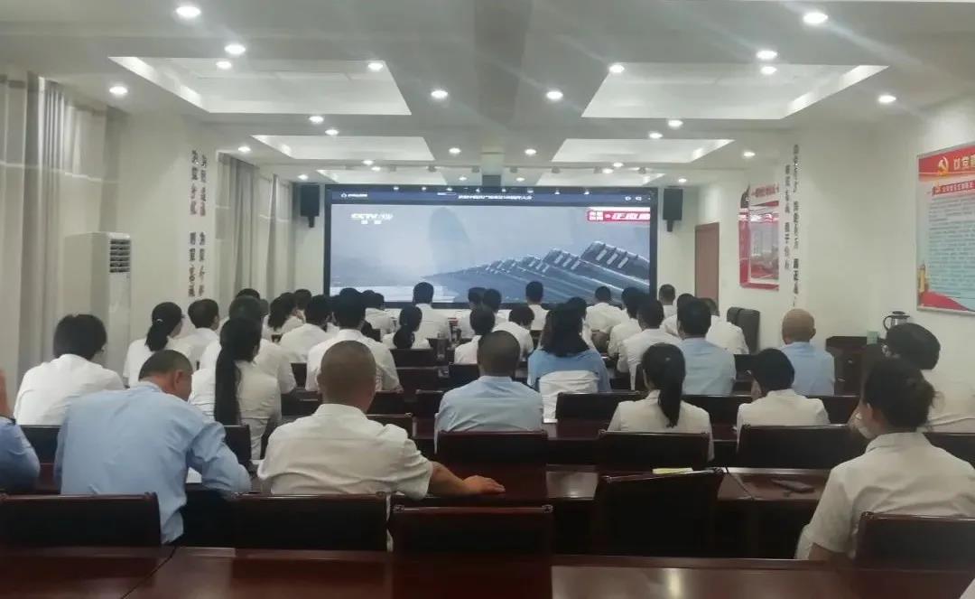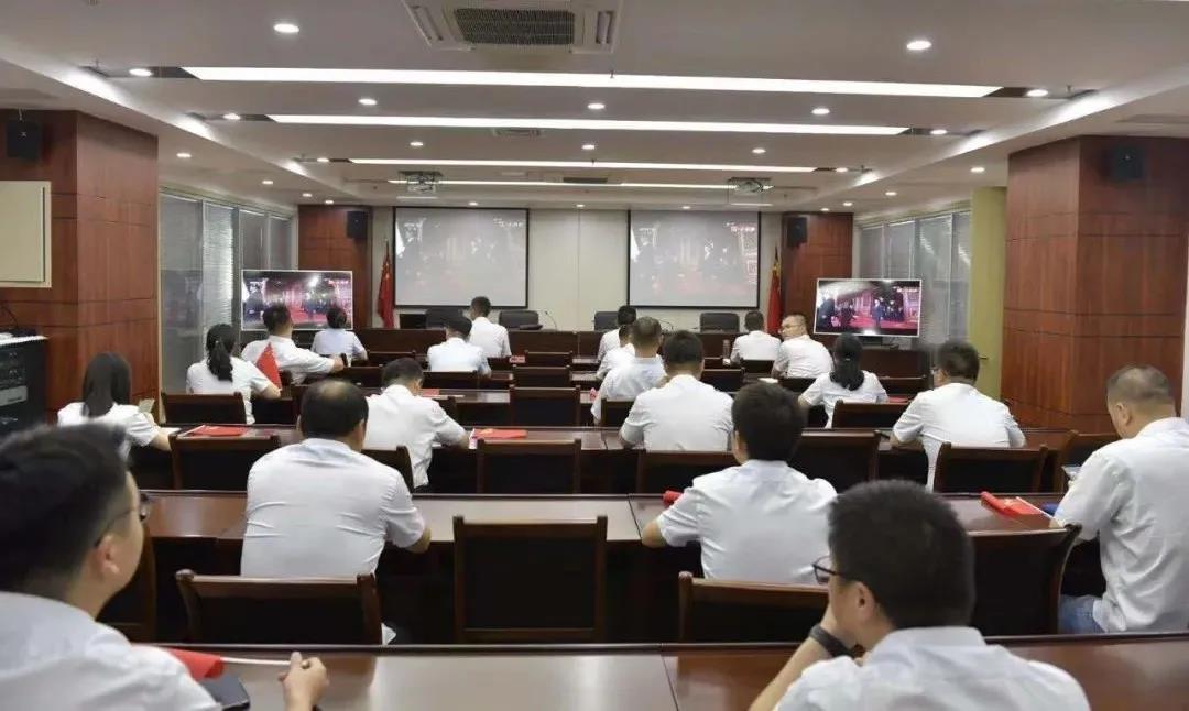 ▲宿迁交建组织收看大会现场直播