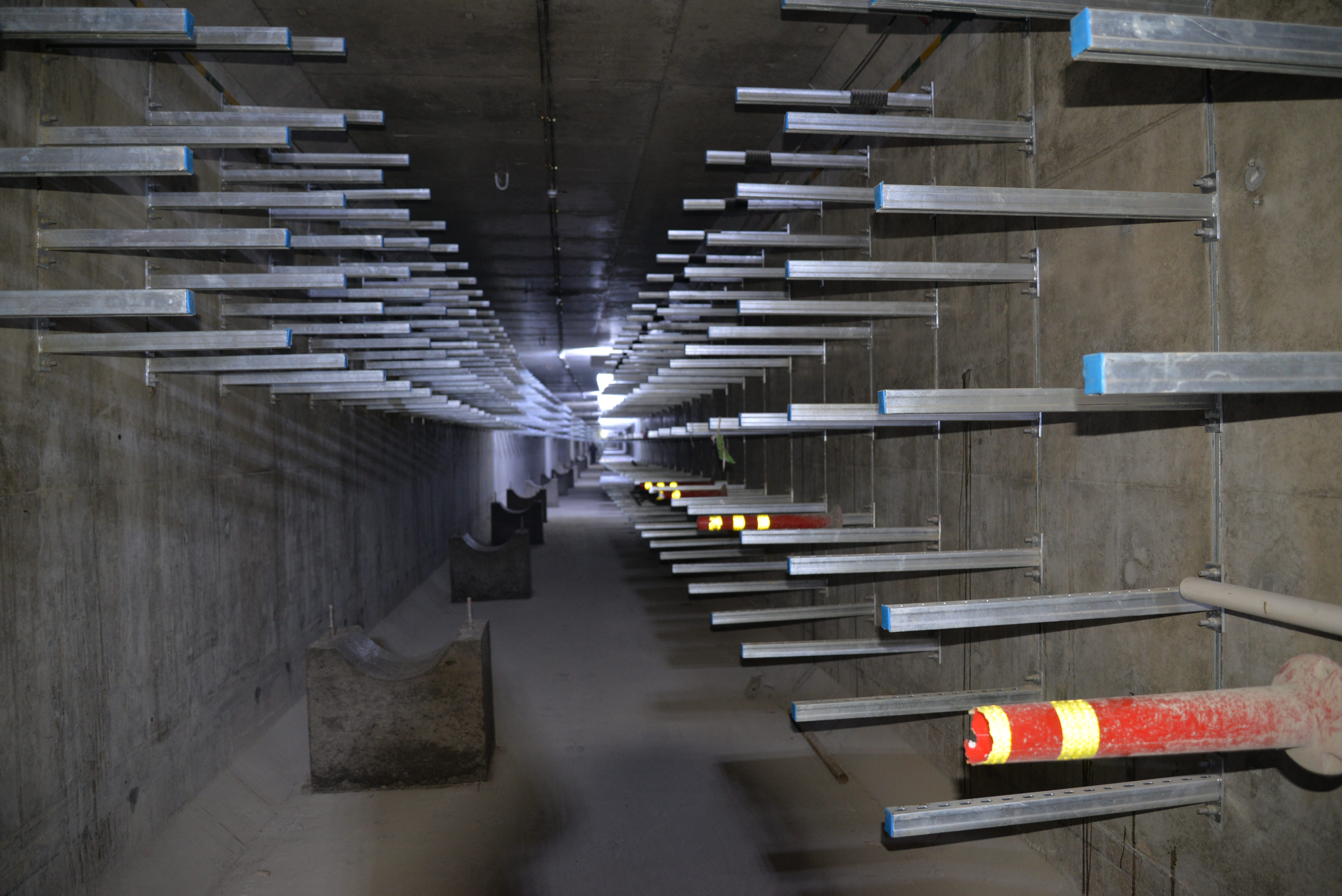 宿迁市高铁商务区地下综合管廊项目是我市首条地下综合管廊工程,共计两条管廊,分别为广州路管廊和富康大道管廊。项目建成后,将在城市地下建造一个隧道空间,电力、通信、燃气、供热、给排水等各种工程管线集于一体,并设专门的检修口、吊装口和监测系统,统一规划、统一设计、统一建设和管理,是保障城市运行的重要基础设施。
