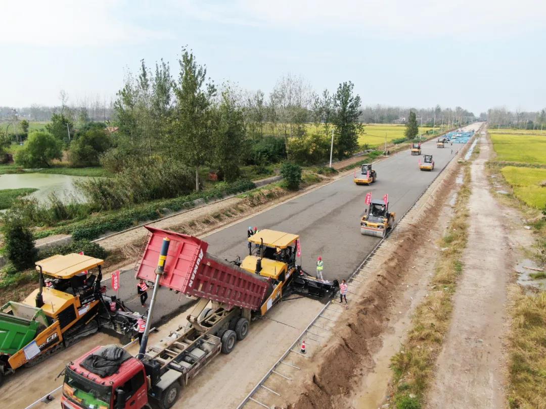 【宿迁交建】宿迁交建268省道宿迁段工程(洋河新区段)项目水稳首件试验段摊铺完成
