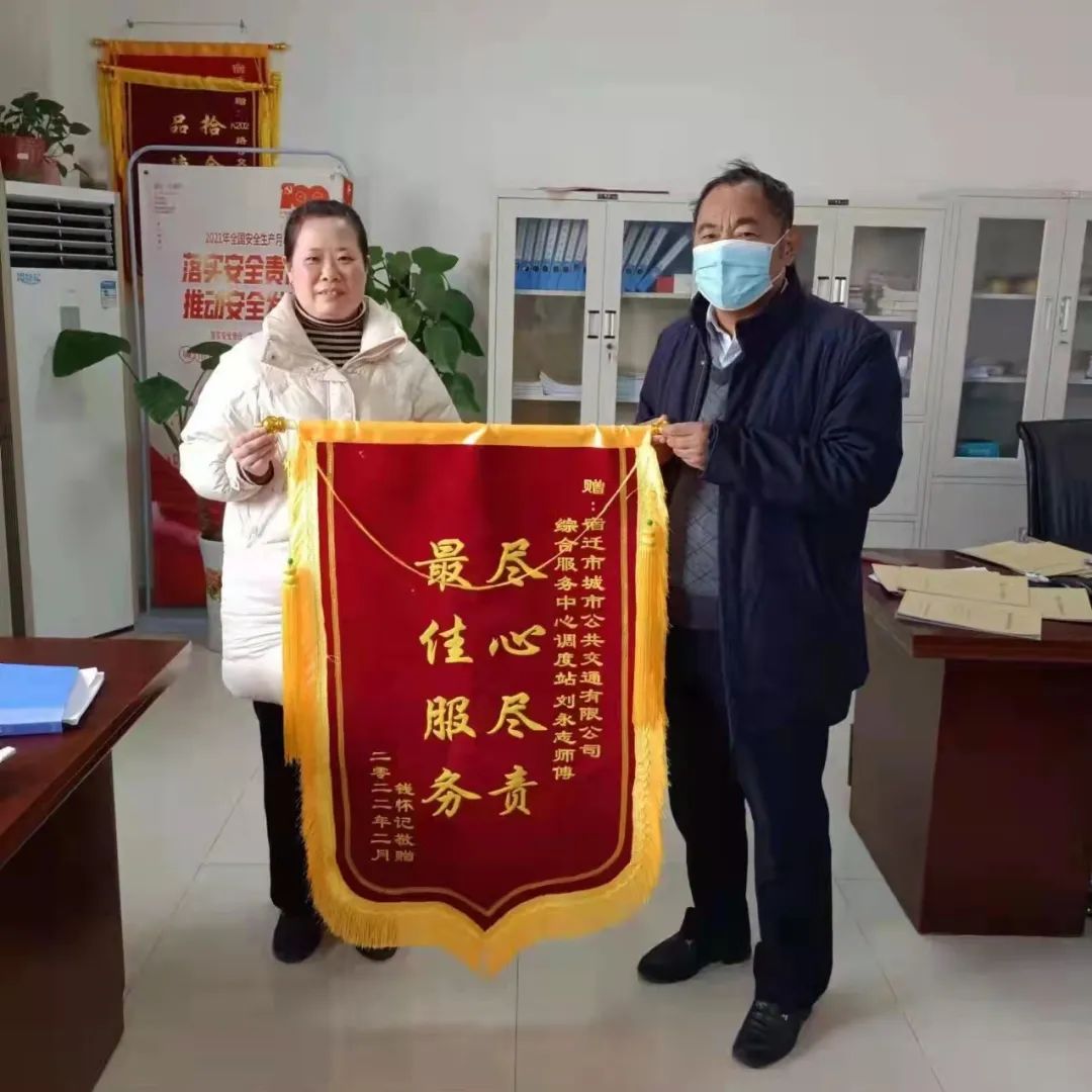 近日,市民钱先生将一面写有“尽心尽责,最佳服务”的锦旗送到了公交公司综合服务中心调度站,感谢K202路驾驶员刘永志三个月前的见义勇为、热心相助。