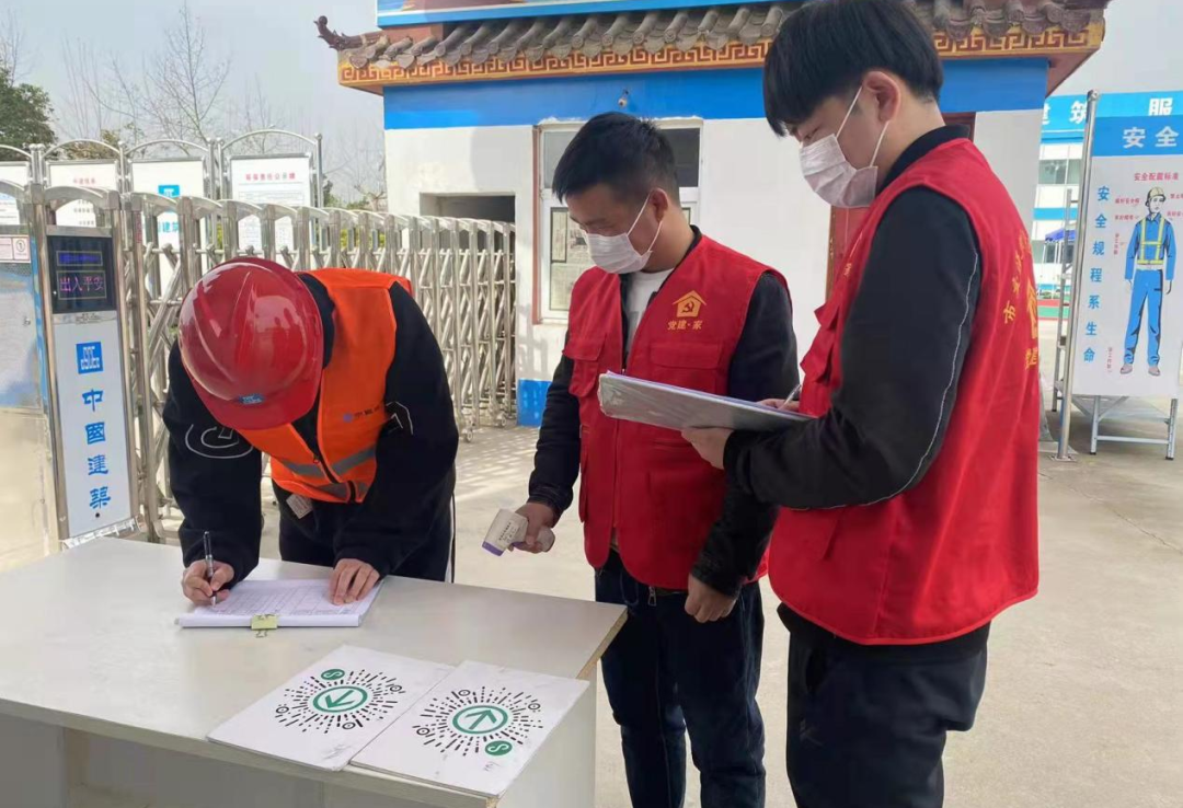 为阻断疫情传播,确保项目建设有序运转,所有在建项目部实行封闭管控,各临时党支部党员志愿者深入项目一线,严格排查进出人员苏康码、行程卡、体温及核酸检测情况,对于进出工地现场人员和车辆一律登记备案。同时,实行“点对点”专项服务,所有建设者按照固定路线、集中接送,防疫同时做好人文关怀。