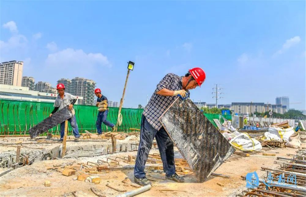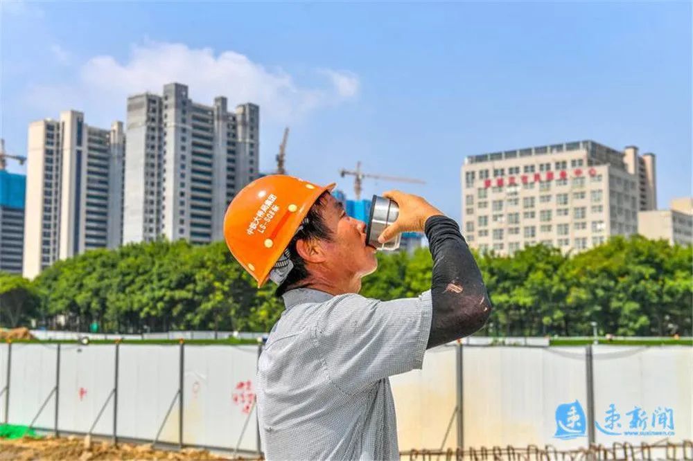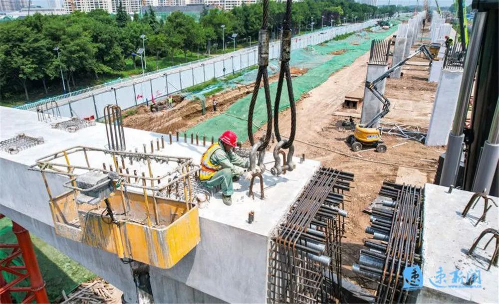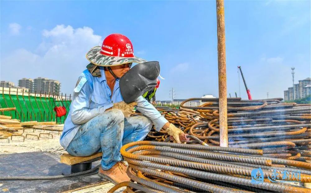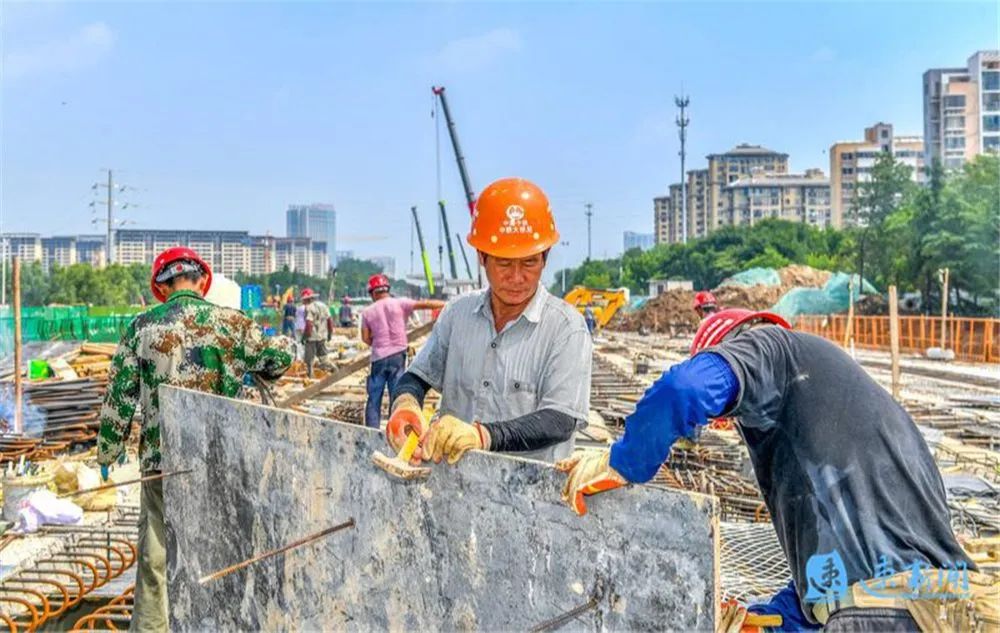7月13日,宿迁市最高气温达36摄氏度,在宿迁市迎宾大道二期快速化改造工程项目施工现场,广大建设者冒着高温,奋战一线,铆足干劲拼抢工期。