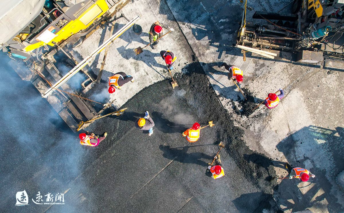 2月19日,宿迁市迎宾大道二期快速化改造工程建设现场一片火热,数十台车辆及机械设备正在进行沥青下面层摊铺,建设者开足马力,加快推进工程进度,力争早日建成通车。
