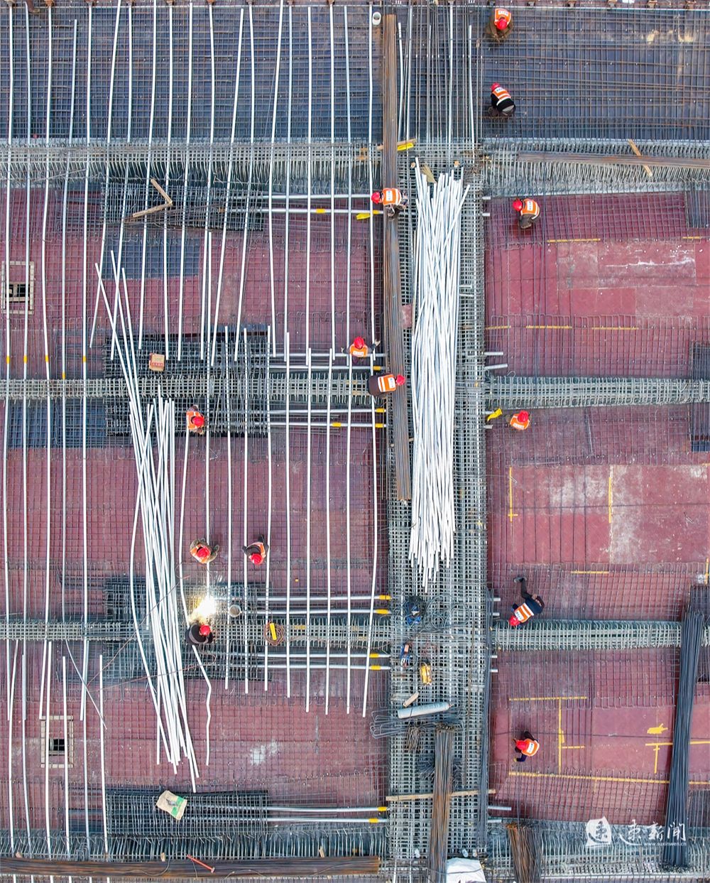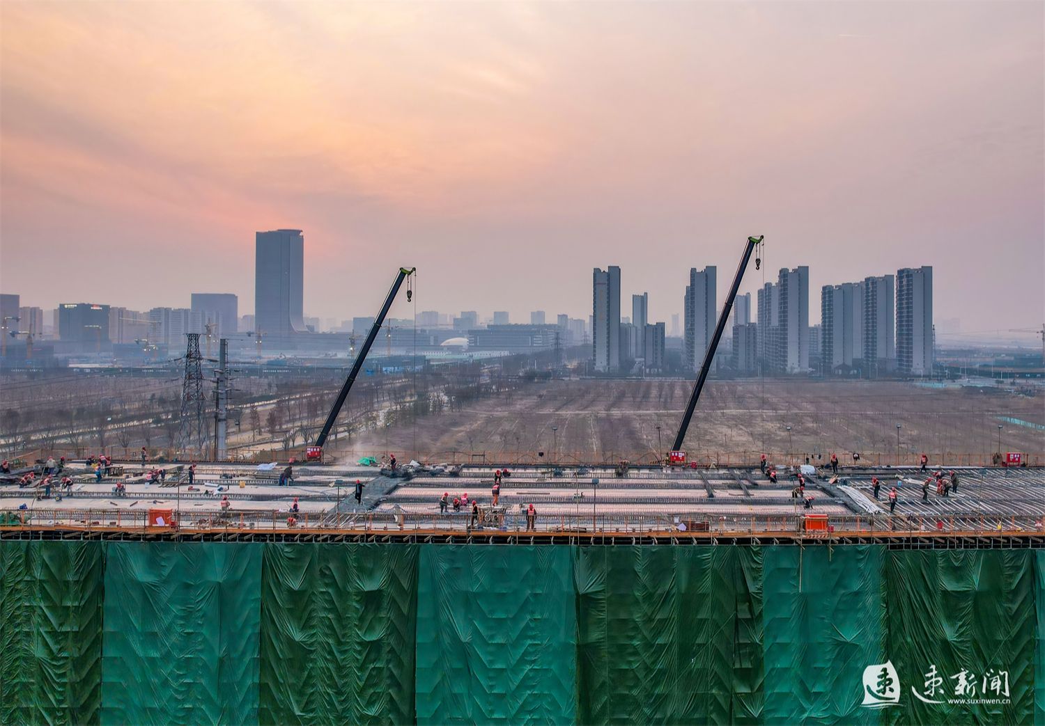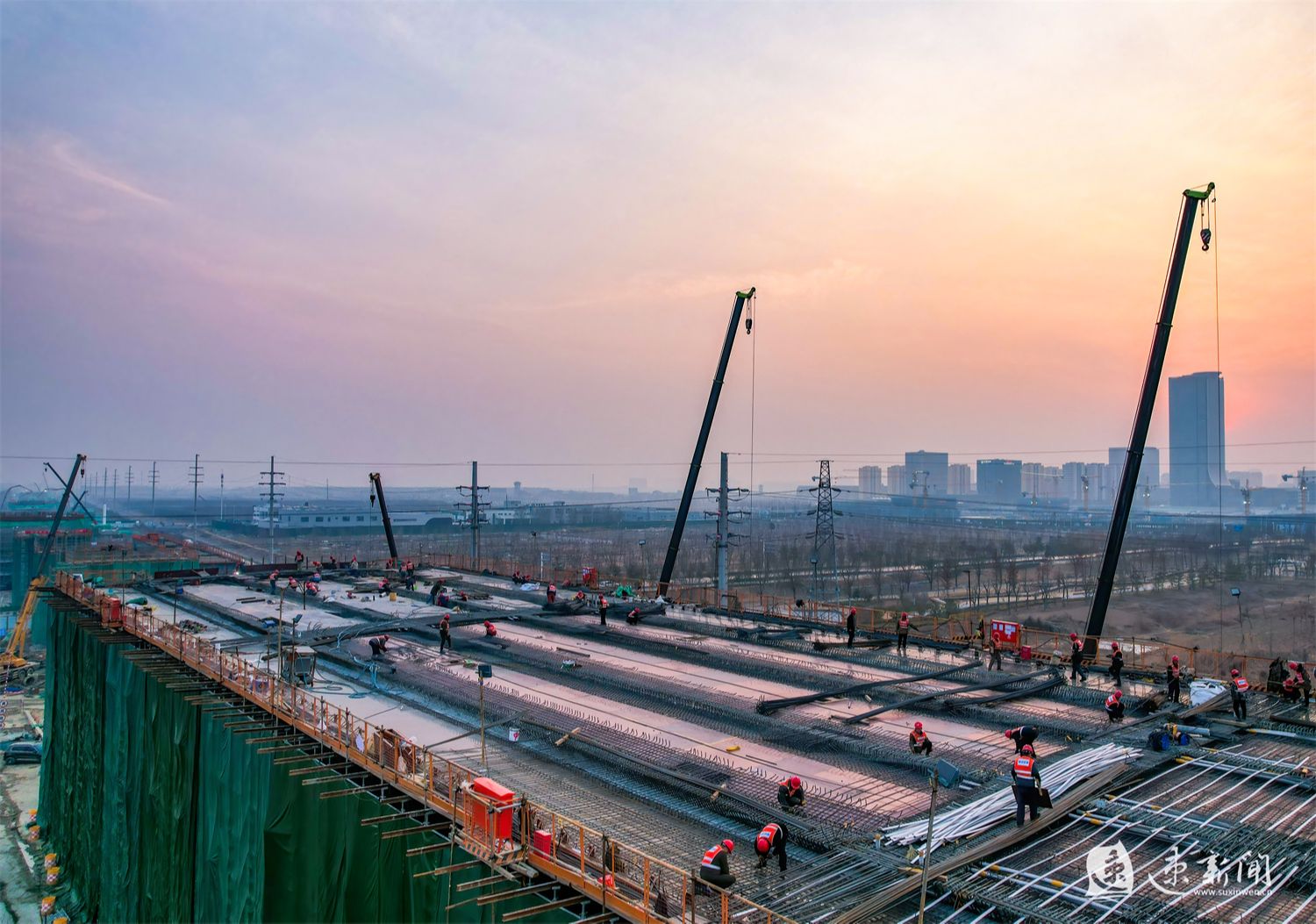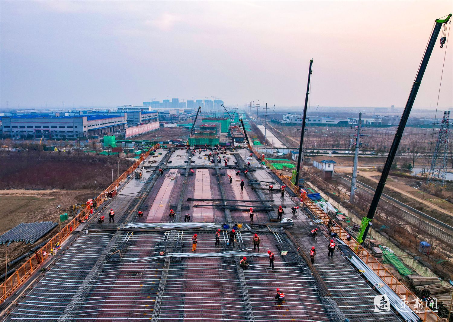 1月29日,在酒都路(原张家港大道)一期快速化改造工程施工现场,工人正在加紧施工,一派繁忙景象。