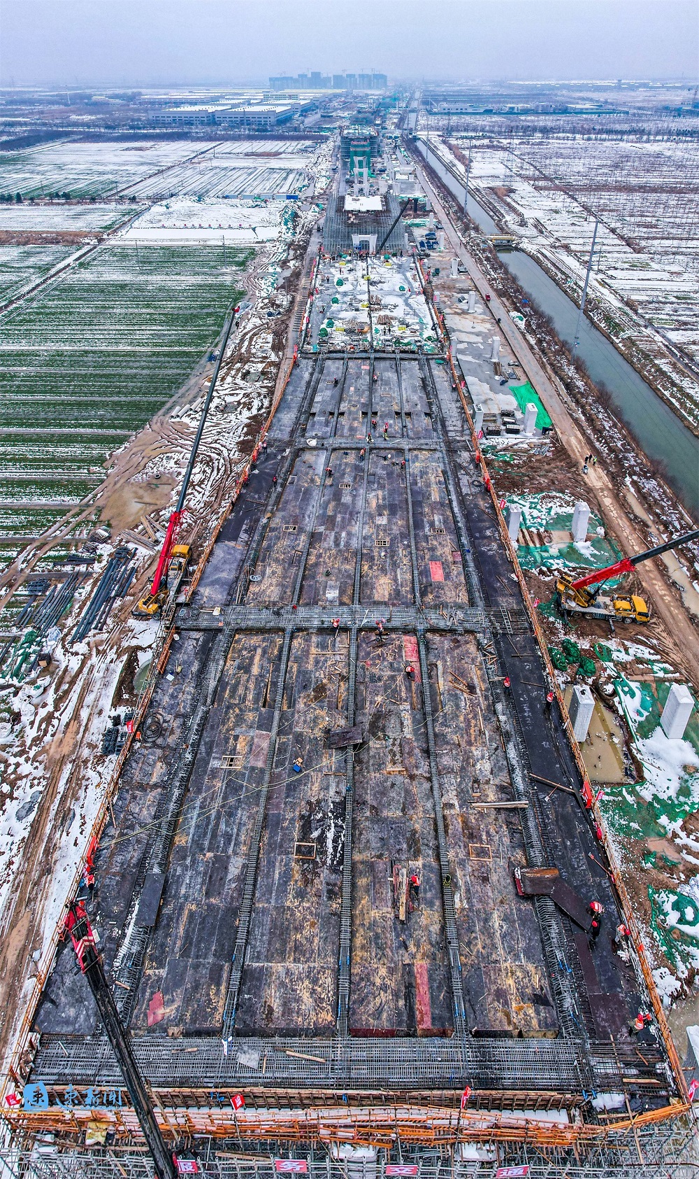 2月28日,在宿迁市酒都路(原张家港大道一期)快速化改造工程现场,施工器械不断运转,工人正在紧张施工。