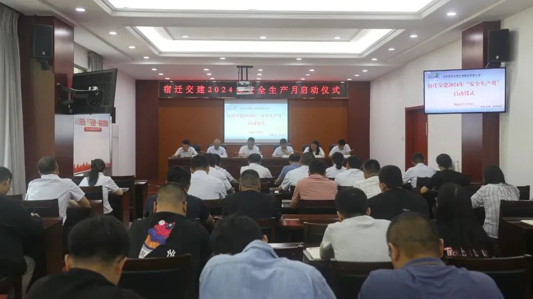 2024年6月是全国第23个“安全生产月”,为全面响应并深入贯彻 “安全生产月”的规划部署,紧扣“人人讲安全、个个会应急—畅通生命通道”主题,宿迁交建举行2024年“安全生产月”活动启动仪式。公司领导班子、中层干部、项目经理、各项目安全员参加启动仪式。