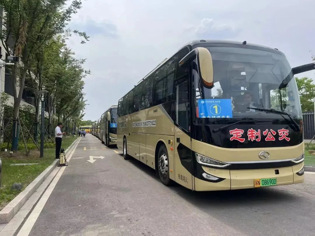 为保证广大考生安心准时赴考,公司共投入新型定制公交车辆70余台次,备足机动车辆,抽调技术精湛、责任心强的驾驶员参与送考,并安排工作人员提前与各校带队老师做好对接,随车奔赴考点开展现场调度、咨询等服务,如遇突发情况,实时进行运力调配,确保做好广大师生的送考服务工作。