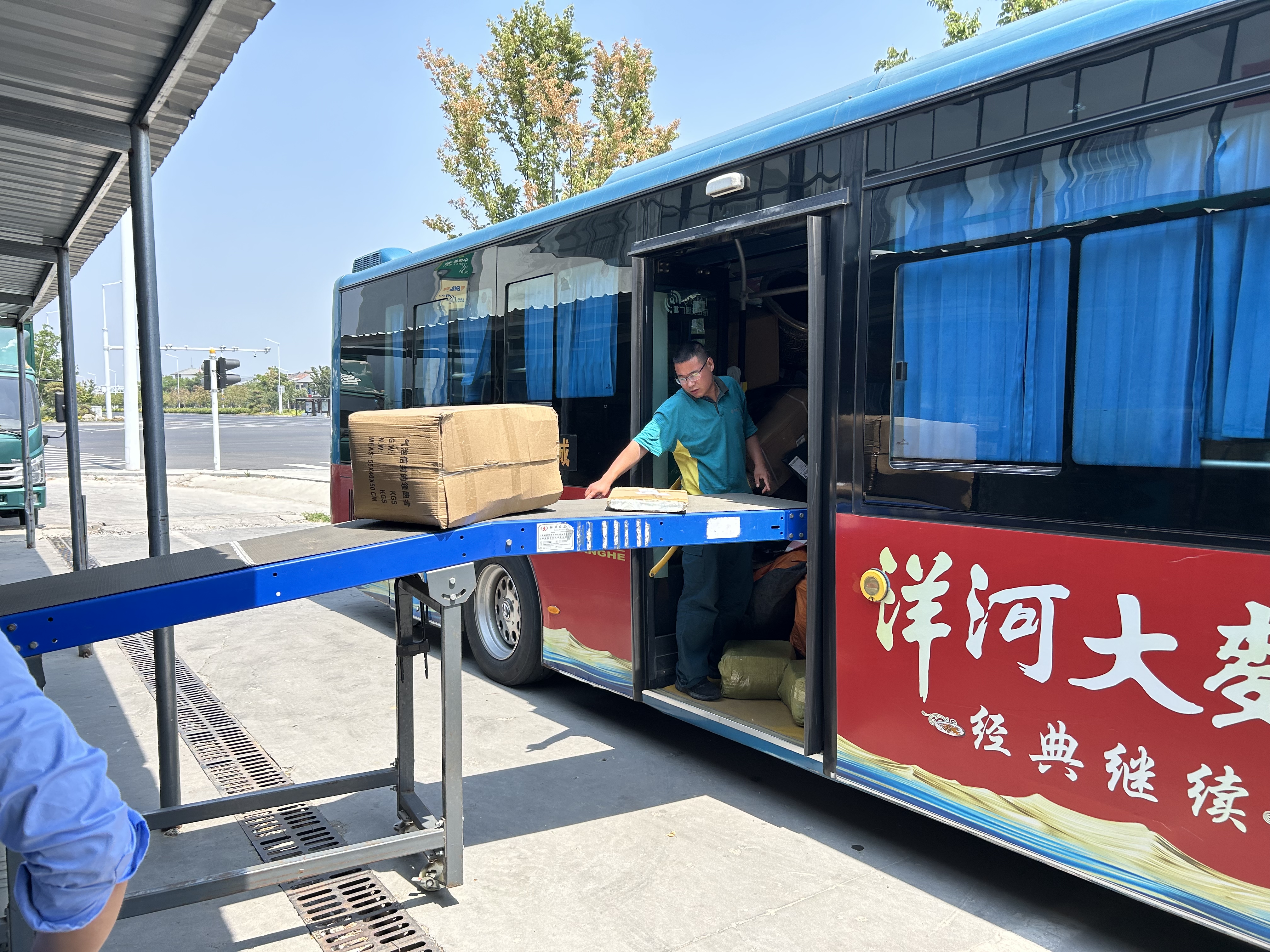 当日,在宿迁市宿城区寄递物流共配中心,传送带上邮件有序流转,工作人员细致清点包裹,一派热火朝天的景象。与往日不同的是,承担运输任务的由邮政货车变成了公交车。