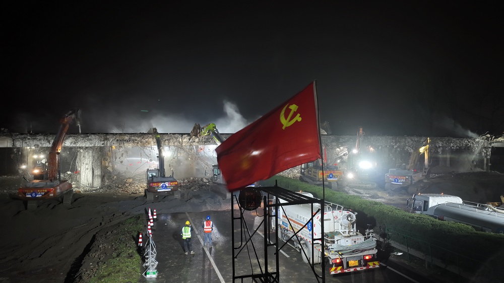 近日,由宿迁交建参建的沪武高速2标项目顺利完成霞客互通上跨C匝道桥拆除任务。此次拆除作业历经14小时,在确保道路次日早高峰前恢复通行的前提下,为后续工程的推进奠定了坚实基础。