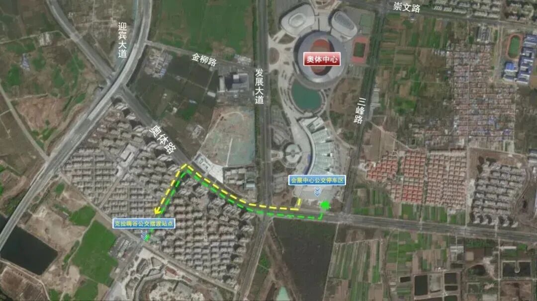 具体线路:发展大道——奥体路——会展中心(奥莱广场)
