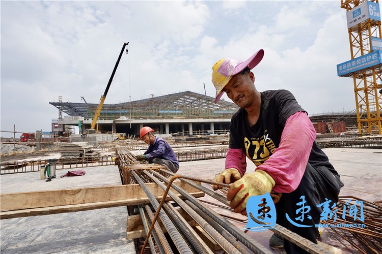当天下午3点,站前广场地下车库顶板浇筑工作历时两个小时终于完工,工人马建军的工作制服早已被汗水湿透。“这段时间是浇筑的‘黄金时间’,而且一干就必须干完,不能歇,否则就前功尽弃了。”