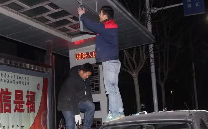 为确保公交候车亭安全 场站公司工作人员 在夜晚进行设施维护检查 对所属公交候车亭做到 全覆盖式巡查 对发现的问题及时处理 有效保障公交候车亭的正常使用