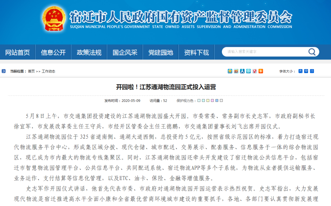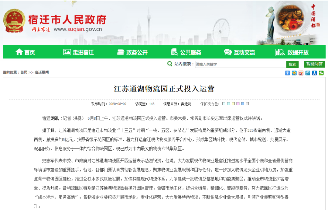近日,《宿迁日报》《宿迁新闻》《政务时空》等市级主流媒体、网上宿迁等政务网站、宿迁论坛等自媒体以及罗戈网、中国智慧物流平台等物流行业媒体纷纷聚焦江苏通湖物流园开园运营。