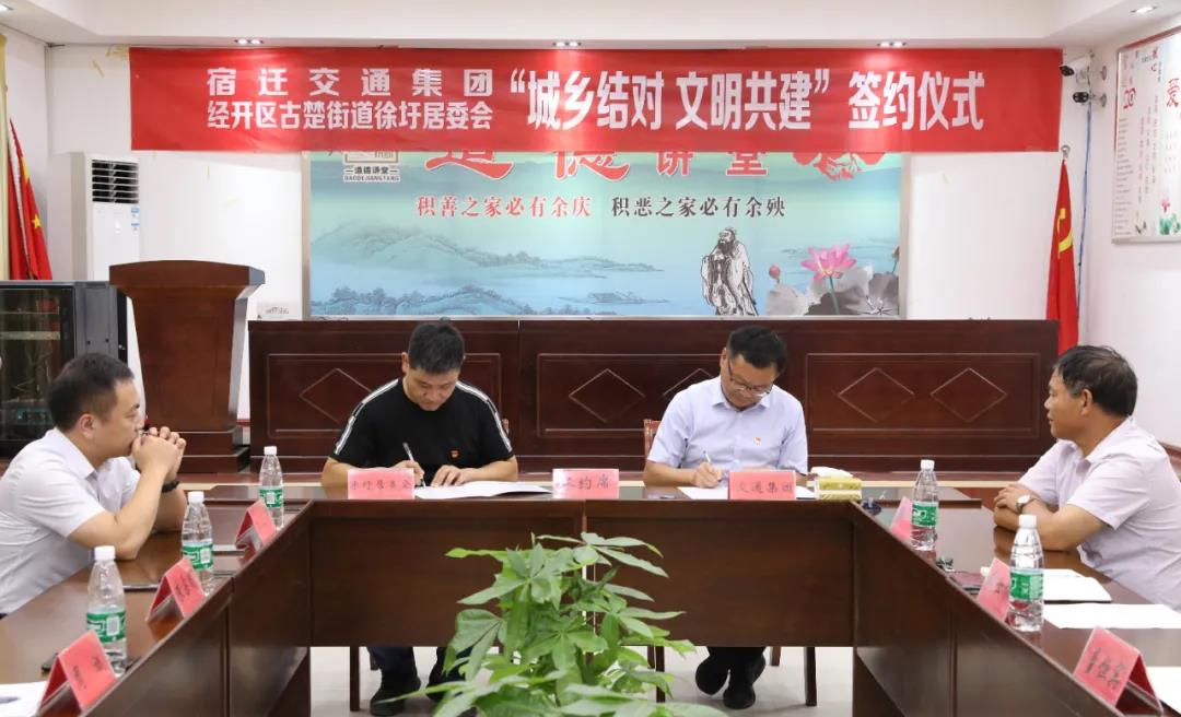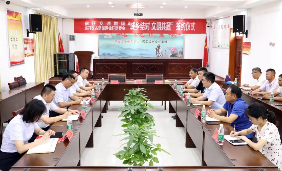 为充分发挥“江苏省文明单位”的示范带动作用,积极履行国有企业社会责任,助力宿迁城乡文明一体化建设,8月27日上午,宿迁交通集团党委副书记周斌一行来到宿迁经济技术开发区古楚街道徐圩居委会,就“城乡结对、文明共建”活动进行座谈交流,并与徐圩居委会签订了为期3年的结对共建协议。古楚街道党委书记董恒宾,徐圩居委会党总支书记、居委会主任臧士振等领导参加活动。