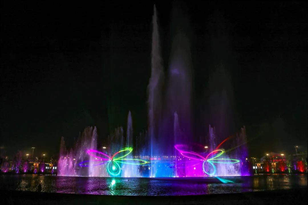 酒都广场喷泉“炫” 市民游客打卡“热”