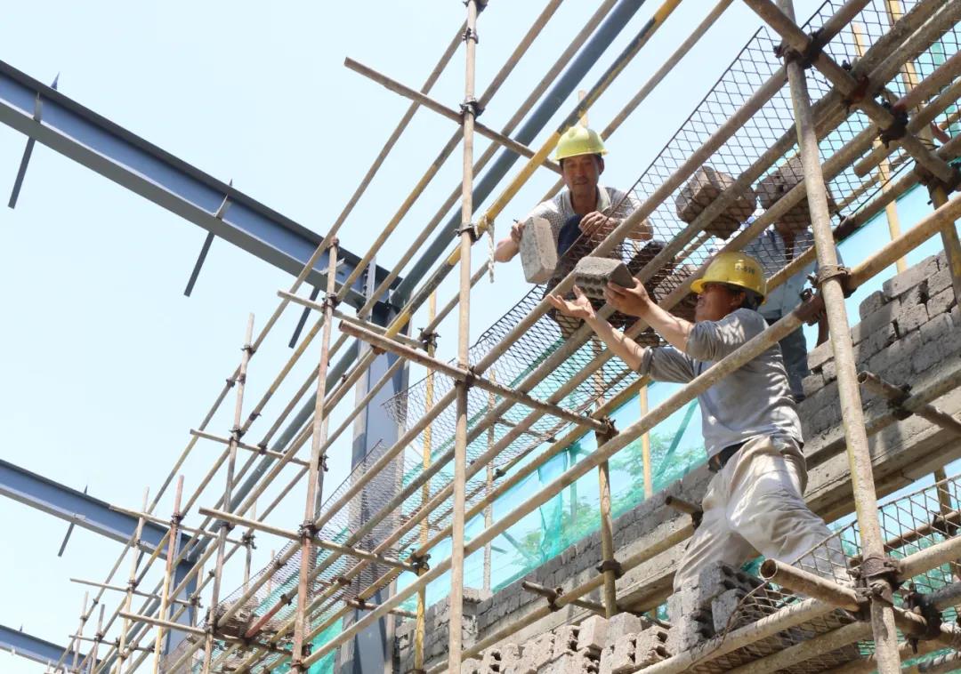 6月7日上午9时许,在环城南路公交停保场里,十几名建设者汗流浃背砌筑维修车间扩建工程的墙体。该项目负责人蔡运喜介绍,为确保按时交付,项目部严格按照施工组织设计和施工方案安排施工进度,配齐配足施工力量和机械设备,实施平面、立体交叉作业。预计该项目在6月底完成主体工程施工。