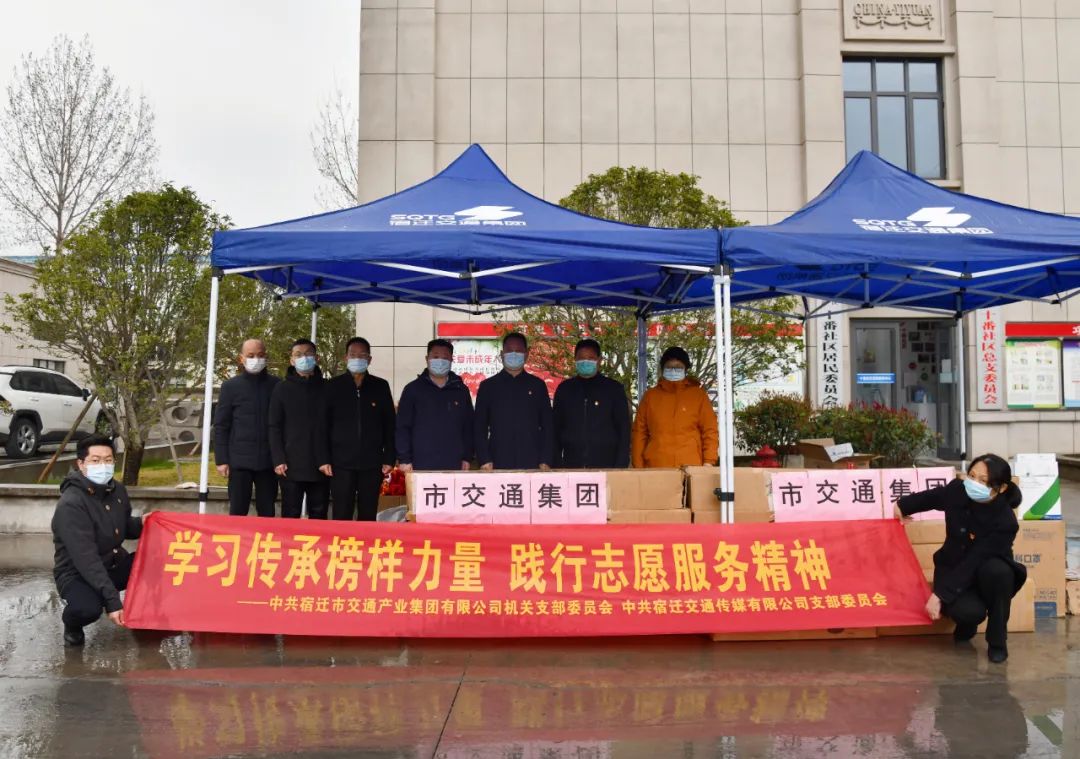 ​​​​​​​    期间,宿迁交建党总支积极主动对接共建社区——宿豫区关庙镇红旗社区党支部,在该支部的统一安排下,党员志愿者挺身而出、冲锋在前,为结对社区送去1200支口罩、4箱84消毒液、10箱纯净水等防疫物资,积极帮助社区工作者开展体温测量、物资分送等志愿服务工作,联手筑牢疫情防控“红色堡垒”。