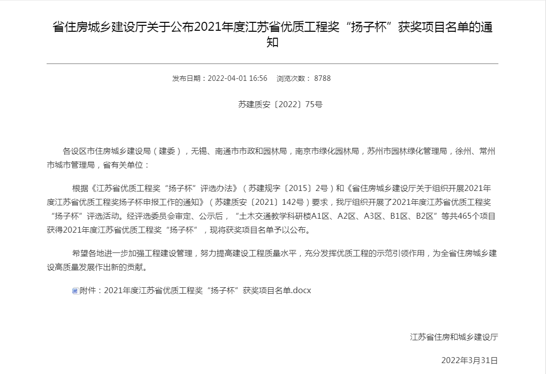 近日,省住房和城乡建设厅公布了2021年度江苏省优质工程奖“扬子杯”获奖项目名单,其中,宿迁交通集团代建的江苏通湖物流园一期配载中心工程、宿迁市综合客运枢纽建设工程景观绿化施工项目名列其中,江苏通湖物流园一期智能配载中心工程项目更是以宿迁市房建工程项目综合评分第一名的好成绩荣登榜首。