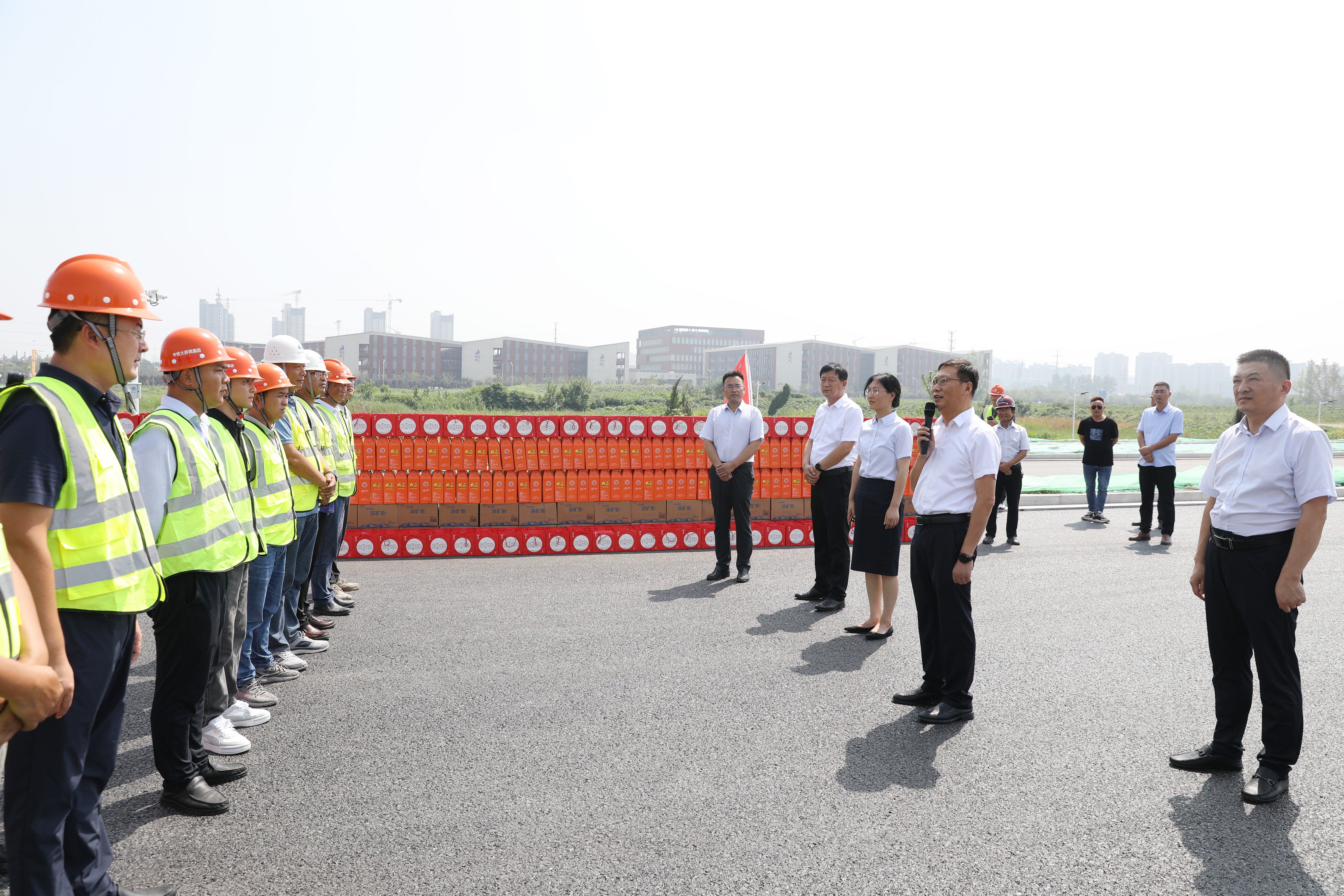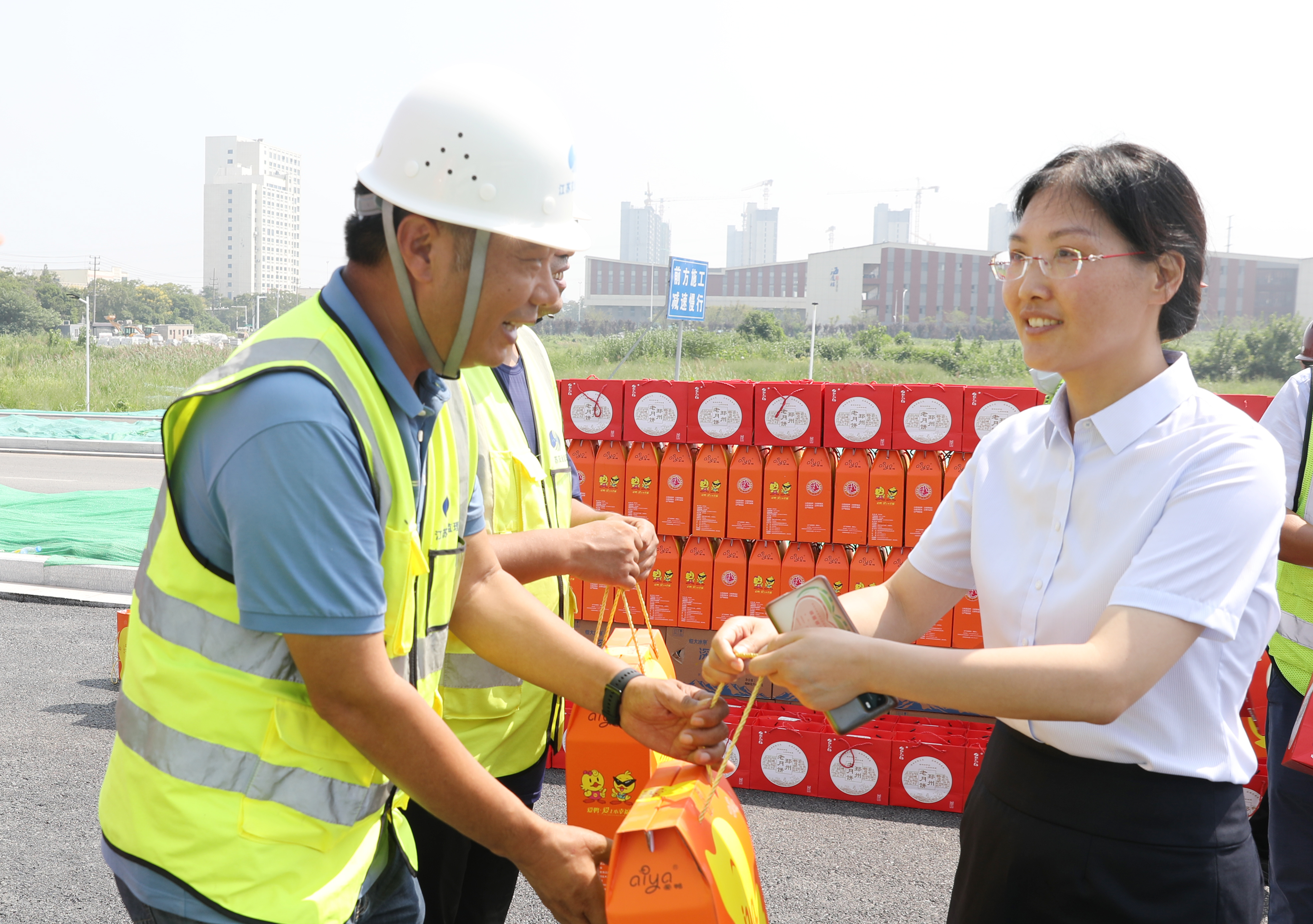 金秋九月,丹桂飘香。9月6日,市政协副主席、宿迁交通集团总经理史明霞,宿迁交通集团党委书记、副董事长邵岩一行先后至通湖物流园二期、北京路及迎宾大道二期快速化改造工程施工现场,慰问一线施工人员,将节日问候和温情关怀送进他们的心坎里,让他们度过一个幸福的传统佳节。