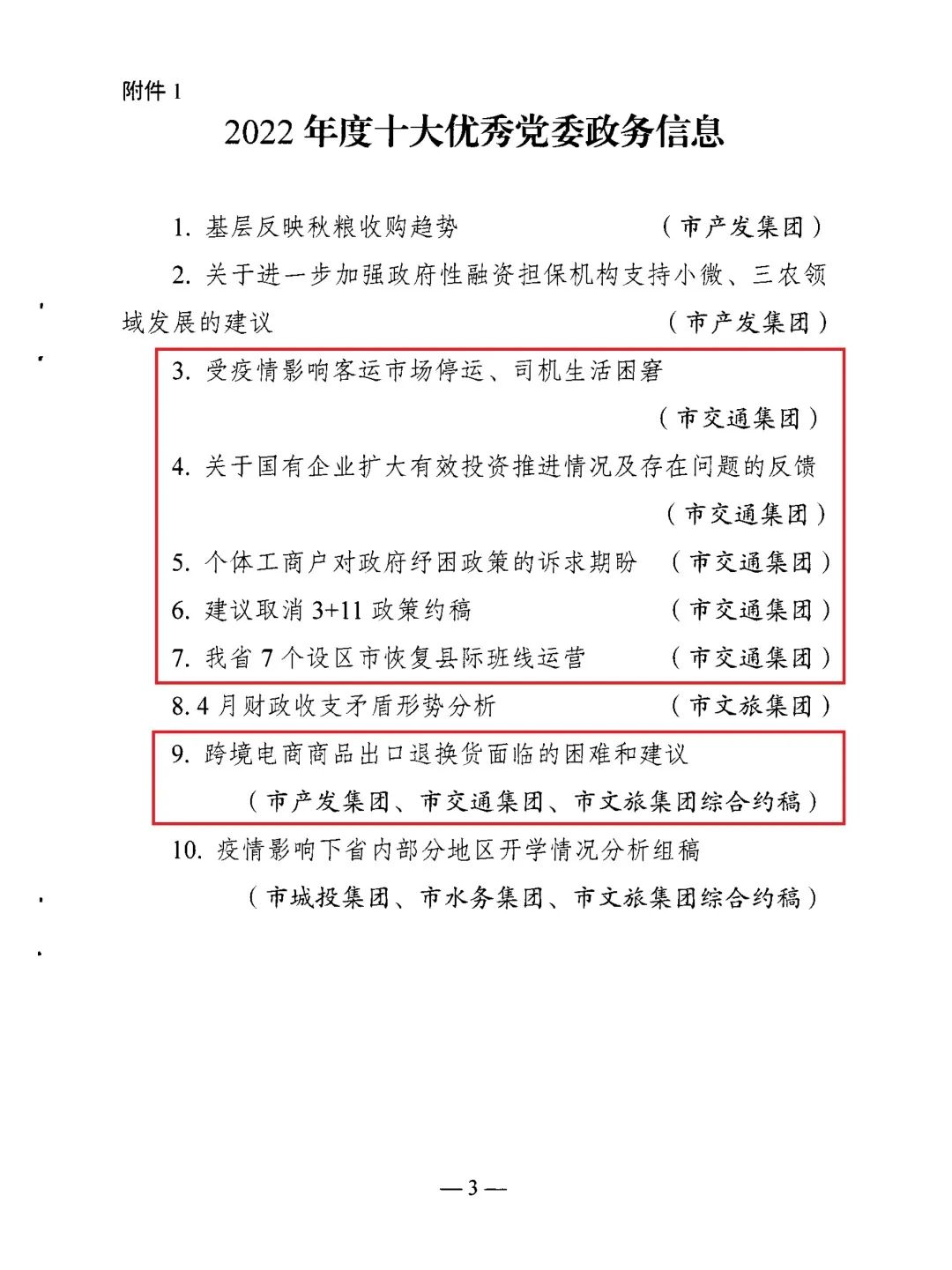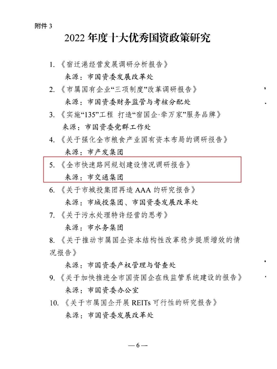近日,从市属国资系统信息宣传调研工作会议上获悉,宿迁交通集团报送的《关于国有企业扩大有效投资推进情况及存在问题的反馈》《建议取消3+11政策的约稿》等6篇党委政务信息获评2022年度十大优秀党委政务信息;《宿迁交通集团:大道坦途阔步行 筑梦扬帆新征程》《又一高架贯通,今后宿迁中心城区快速路网将更便利》等3篇宣传报道获评2022年度十大优秀国企改革宣传;《全市快速路网规划建设情况调研报告》获评2022年度十大优秀国资政策研究。