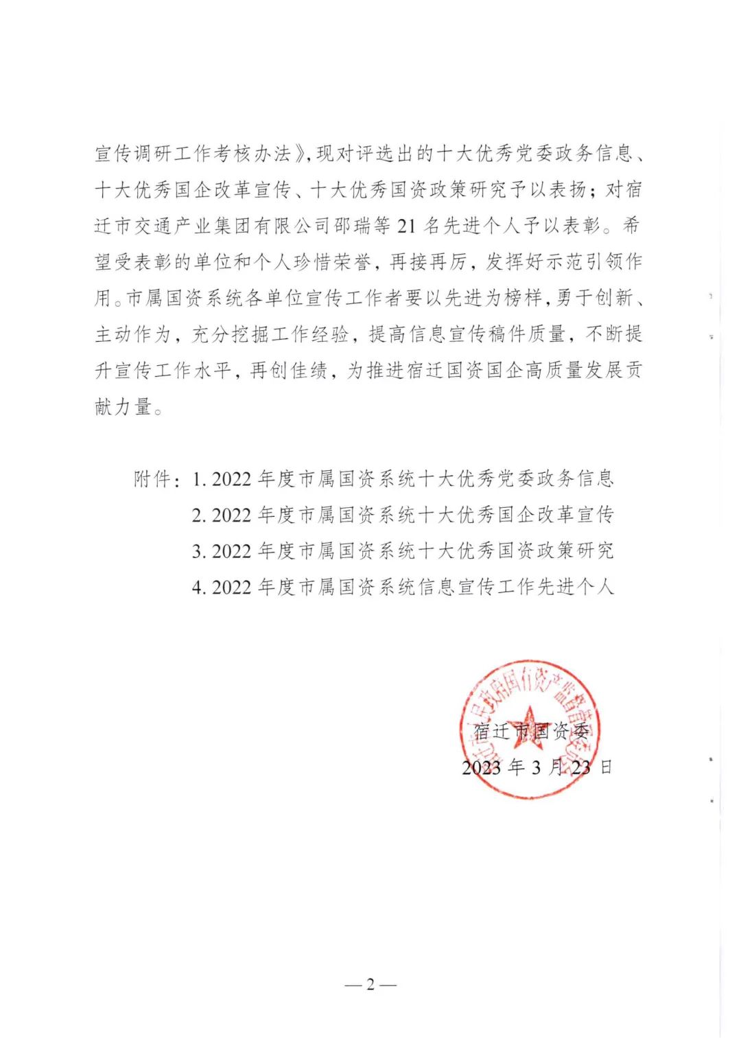 通报表扬!宿迁交通集团信息宣传调研工作获评多项表彰