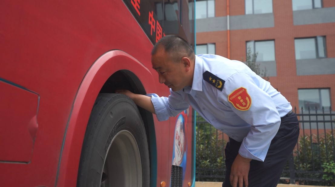 作为公交车驾驶员,无论风雨,提前到岗,检查灯光、轮胎、灭火器等车辆状况,清理卫生,这都是陈建明发车前必做的功课之一,每逢假期,这些准备则要比平时做得更加仔细。
