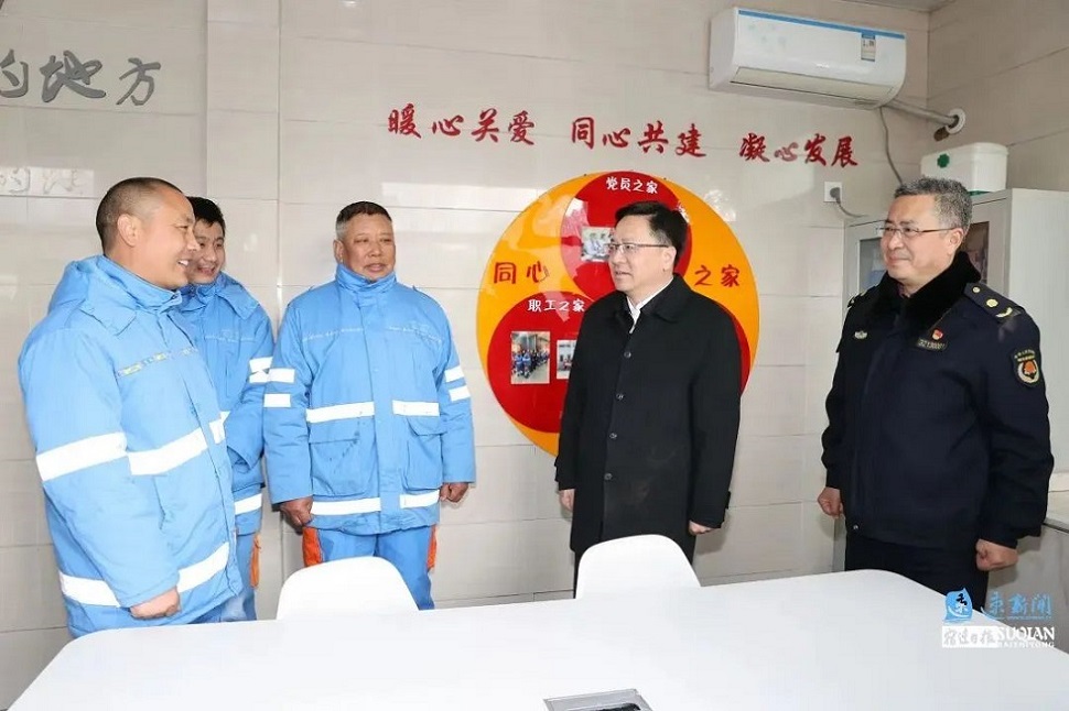 “这段时间大家辛苦了!”在新华书店城管同心驿站,陈忠伟与城管执法人员、环卫工人亲切交谈。陈忠伟向大家长期以来为维护城市环境付出的辛勤汗水表示感谢,并叮嘱大家在工作中注意防寒保暖。他说,近期宿迁出现低温雨雪冰冻天气,城市道路能够实现雪停路净,离不开大家的昼夜奋战、默默奉献。城管部门要做好春节期间城市运行保障和氛围营造工作,努力为市民群众欢度新春佳节创造良好的城市环境。要关心关注环卫工人的工作生活情况,为他们提供舒适的休息场所和更多的暖心服务。