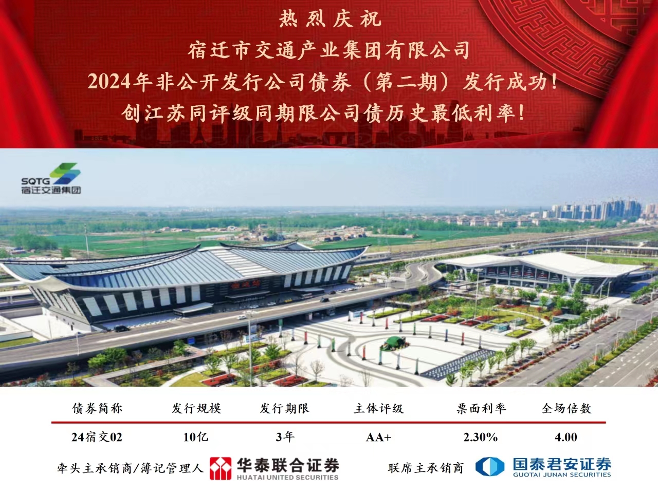 利率再创全省历史新低!宿迁交通集团2024年第二期公司债券成功发行