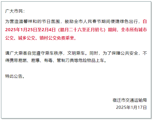 春节免费停车期间,请广大车主自觉遵守交通规则,注意道路交通安全,文明规范有序停车,共同维护良好的停车秩序,在拥挤路段避免长时间占用路侧泊位,让更多市民和游客能够享受到免费停车的便利。