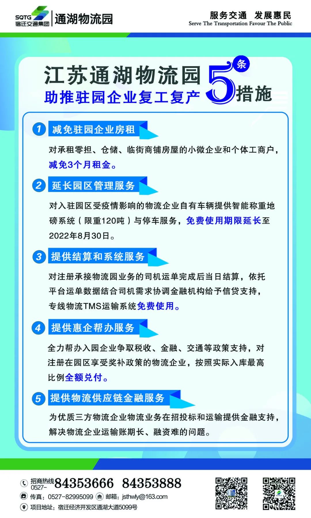 为积极应对新冠肺炎疫情影响,近日,通湖物流园迅速响应市委、市政府相关惠民措施,推出“惠企五条措施”,通过减免驻园企业房租、延长园区管理服务、提供结算和系统服务、提供惠企帮办服务、提供物流供应链金融服务,助推驻园企业复工复产。
