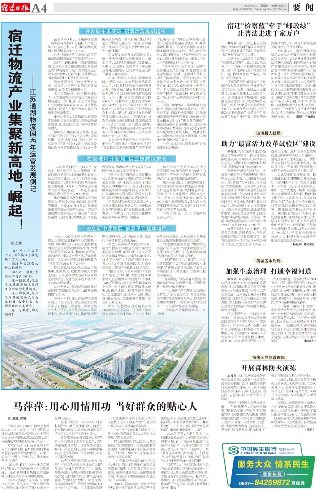 5月7日,宿迁日报以《宿迁物流产业集聚新高地,崛起!——江苏通湖物流园运营两年发展侧记》为题,展现了通湖物流园运营两年以来由无到有、由小到大、由弱到强的完美嬗变。