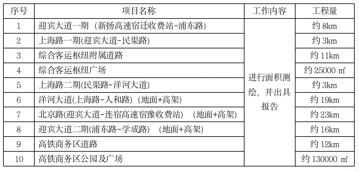 宿迁中心城区快速路网及高铁配套工程管养面积测绘具体项目信息如下:
