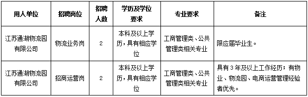江苏通湖物流园有限公司2024年劳务派遣制工作人员招聘简章