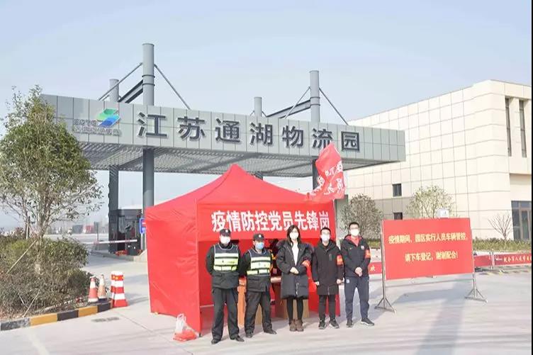 面对疫情,江苏通湖物流园有限公司的党员干部始终坚持发挥先锋模范作用,用初心编织一张安全网,让党旗在疫情防控一线高高飘扬。