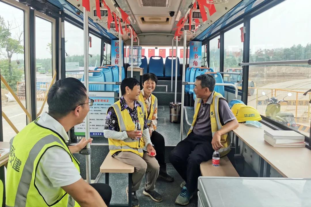 据了解,“宿迁交建·流动职工之家”由公交车改造而成,车内设置17张独立座椅、三张餐桌,配有空调、冰箱、饮水机、应急药箱以及容纳280余本书籍的红书角,切实为施工一线职工提供用餐、休息、学习的场所;车身外观展示了该公司党总支“匠心筑路党旗红·交建先锋”的品牌符号以及企业文化主品牌“工于匠心 建领未来”、子品牌“五色匠心”,进一步提升职工对品牌认可度。