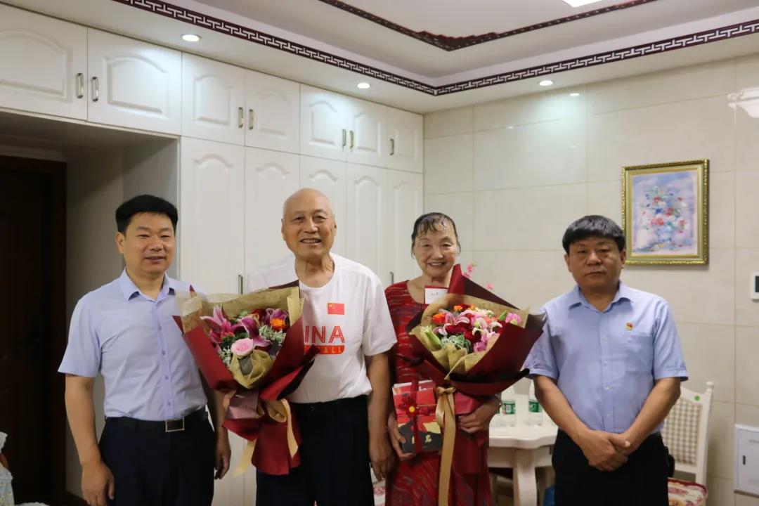活动中,支部书记卢裕松带领党员及退役军人代表登门拜访老党员、抗美援朝老战士徐金城和刘玉侠两名同志,认真倾听老人从军保家卫国浴血奋战的革命往事,详细询问老人身体状况和生活情况,现场参观两位老人所取得的荣誉证书、革命勋章,随后,他还向两位老战士送上精心挑选的党史学习教育红色书籍和营养品,表达中心支部全体党员和退役军人对他们的诚挚祝福。